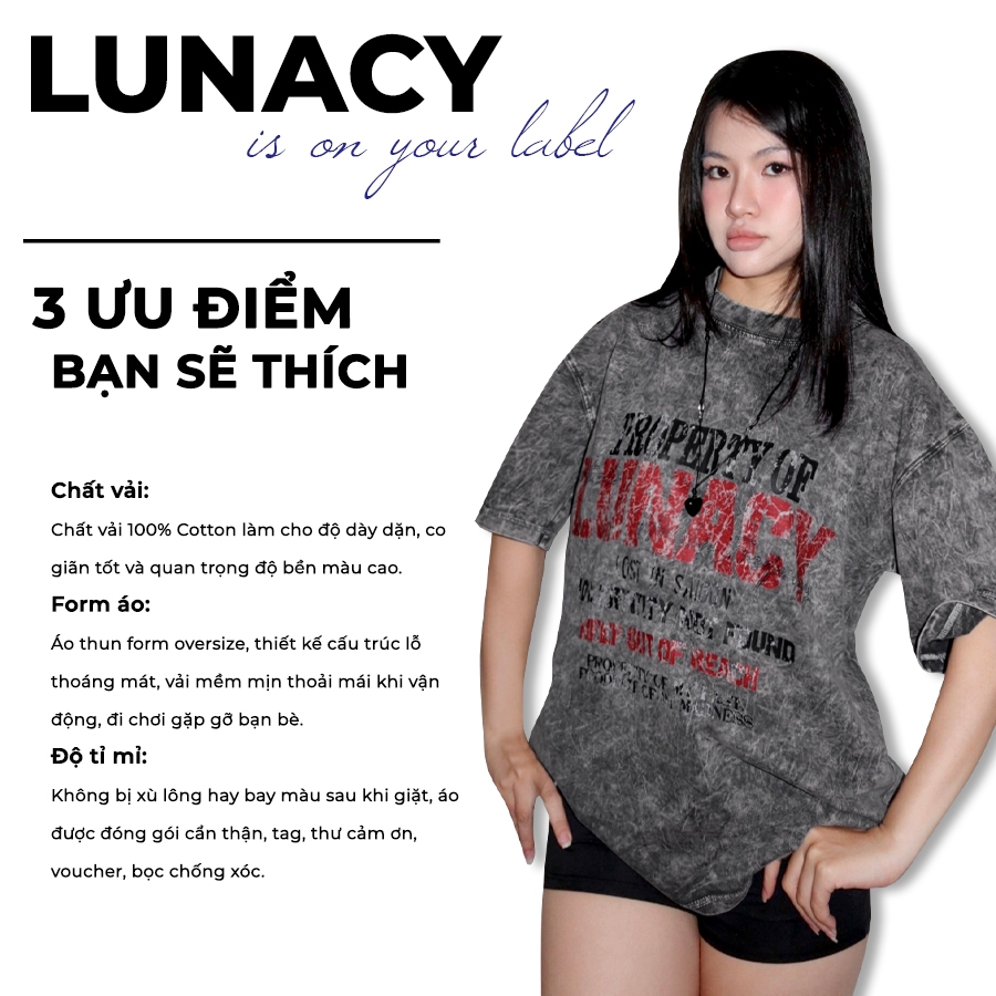 TÊN SẢN PHẨM: Áo Thun Wash Xám Overed Tee Local Brand LUNACY Form Oversize, Áo Phông Chất Cotton Unisex Nam Nữ