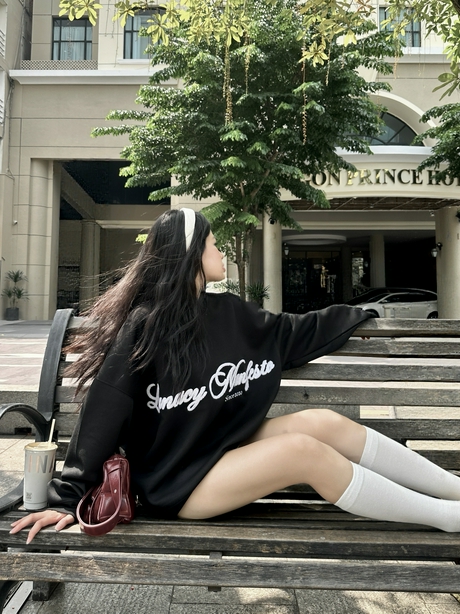 - Form rộng unisex: Dễ phối đồ với quần jeans, jogger, chân váy, phù hợp đi học, đi chơi.